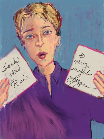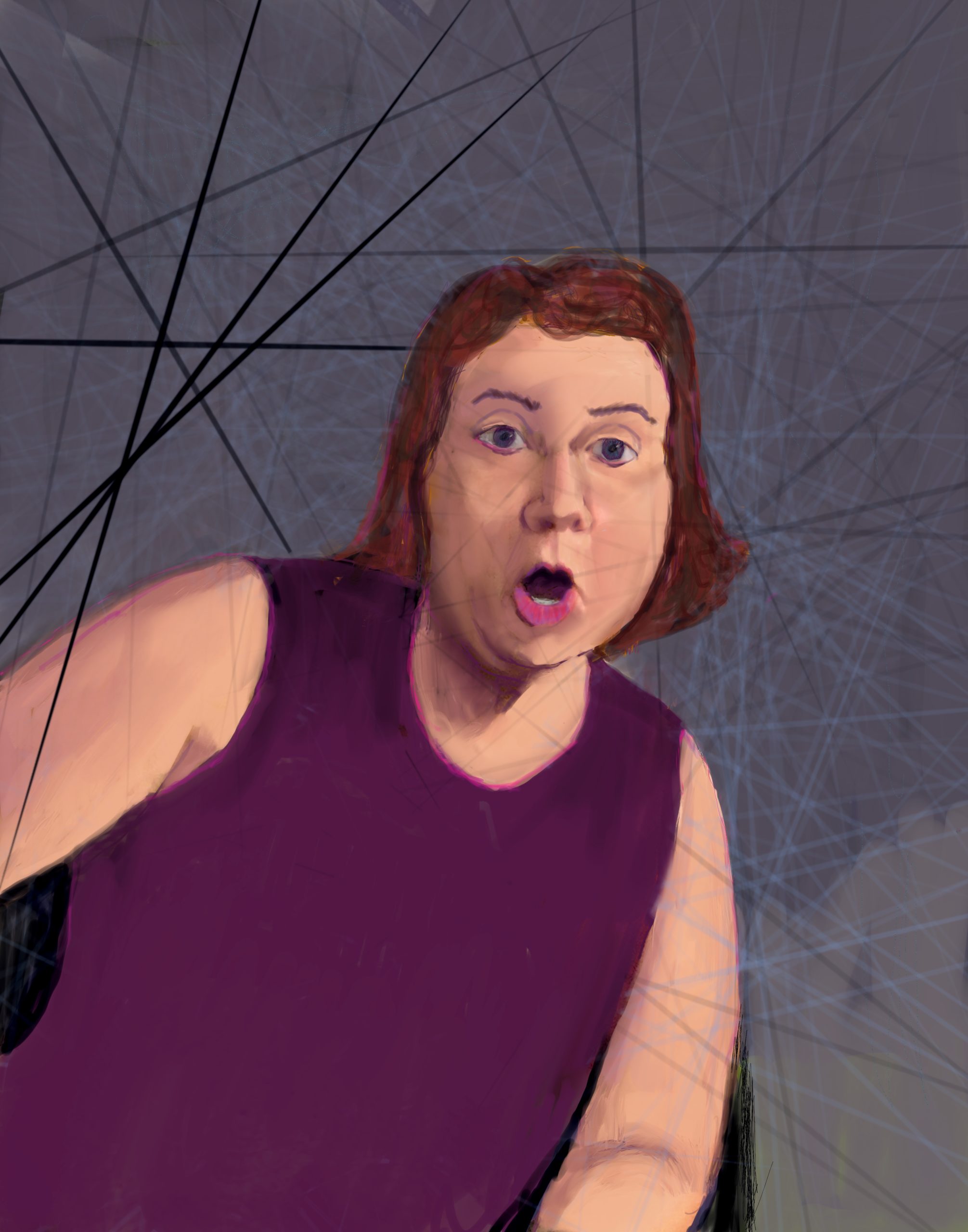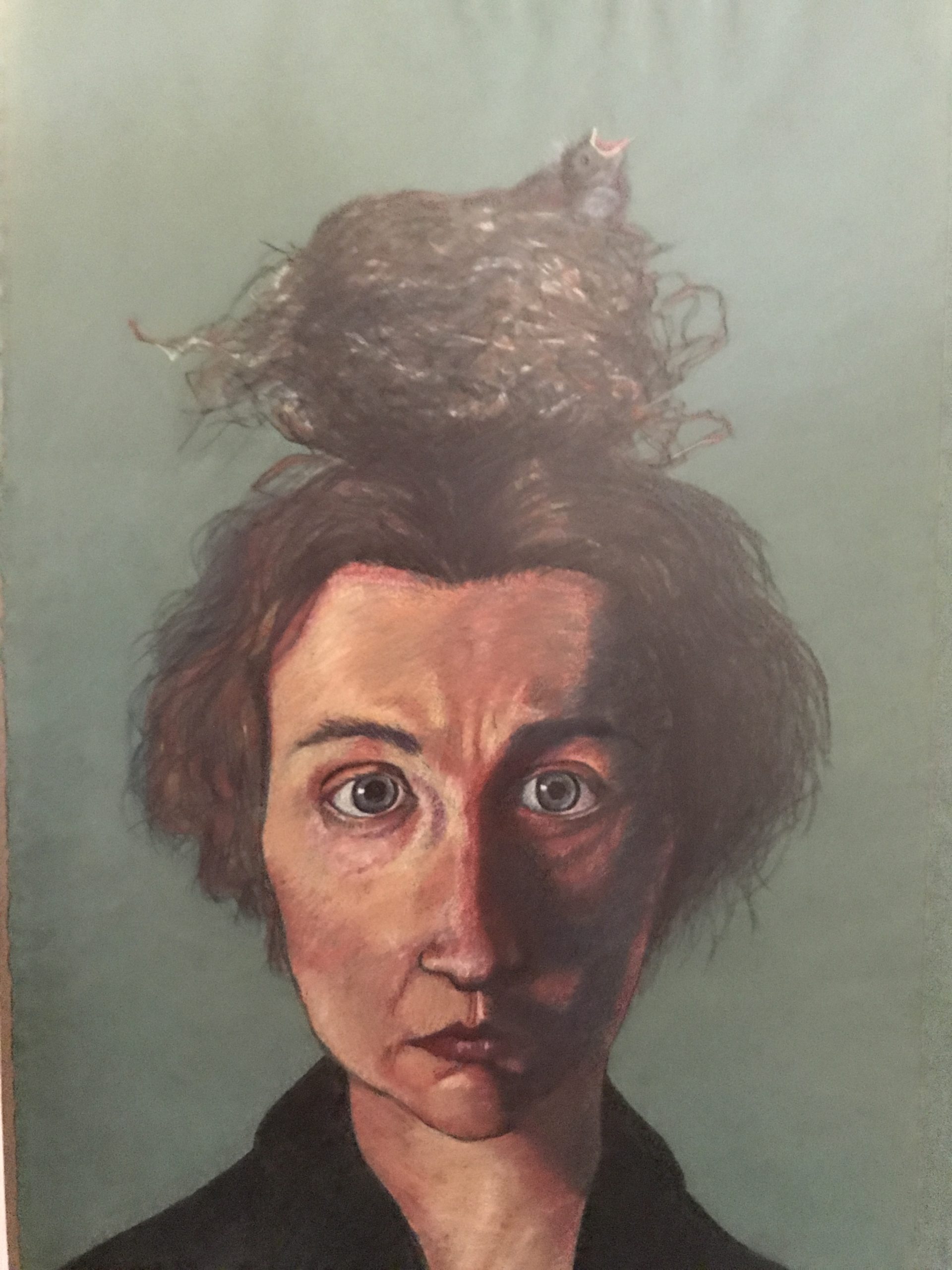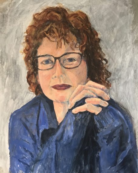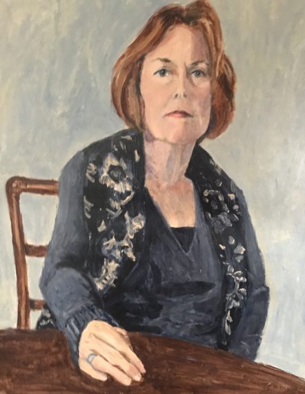Current Show 27″ x 35″ Acrylic on raw linen Resting Bitch Face Current Show: False Hope Syndrome She never backed down to a banty rooster Acrylic on raw linen 27″x 35″